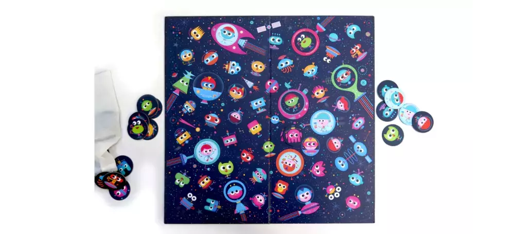 50 personajes del espacio para buscarlos y encontrarlos en el tablero.